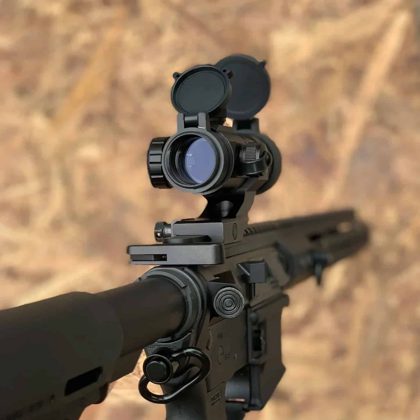 With red and green illuminated sights, an instant co-witness, and flip up lens covers… this waterproof, fog proof and shockproof optic is up for any adventure you throw at it.